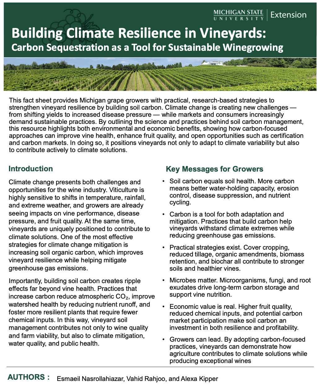 I co-authored a Michigan State University publication focused on how soil health supports climate resilience in vineyard systems.